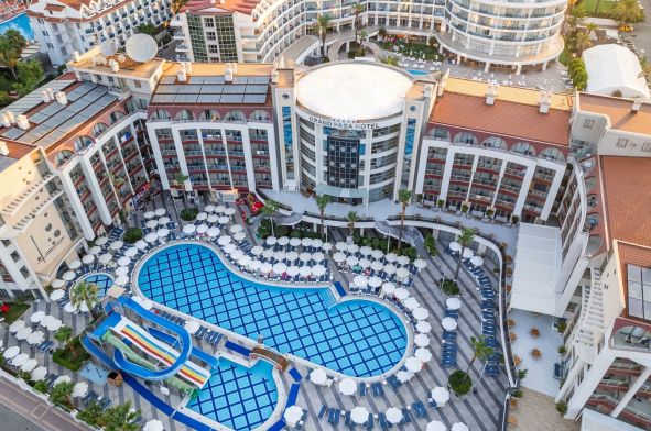 Основен ресторант, 3 бара, открит басейн, закрит басейн, детски басейн, водна пързалка, СПА център, детски клуб, аеробика, билярд, дискотека, анимация, магазини, конферентни зали. Безплатни услуги: сауна ,турска баня, фитнес, WI-FI интернет в лоби, тенис на маса. Платени услуги: билярд, интернет кафе, пералня, лекар, детегледачка ,Спа и Уелнес център Плаж: Градски плаж - Чадъри и шезлонги при басейна – безплатни, а на плажа – платени.