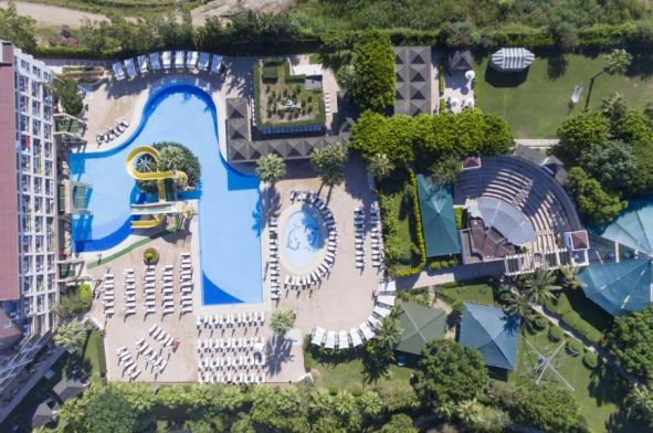 Плаж – собствен, пясъчно-чакълест. Чадъри, шезлонги и кърпи при басейна и на плажа – безплатно.